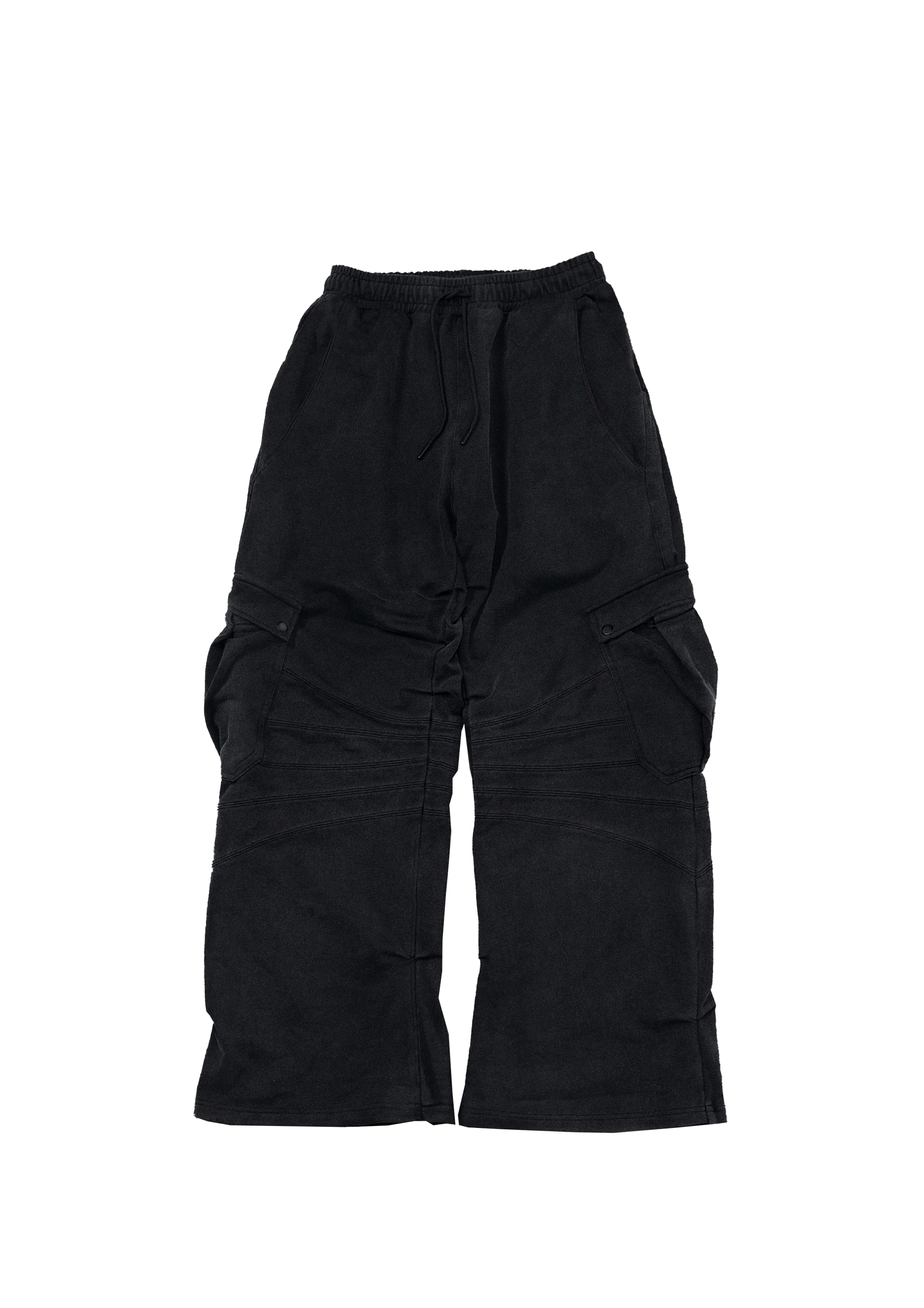Built for functionality, the pants include two cargo pockets, two standard front pockets, and two back pockets for versatile storage. An adjustable drawstring waistband ensures a secure and customizable fit, while the wide, sculpted silhouette adds a distinct identity to the piece.