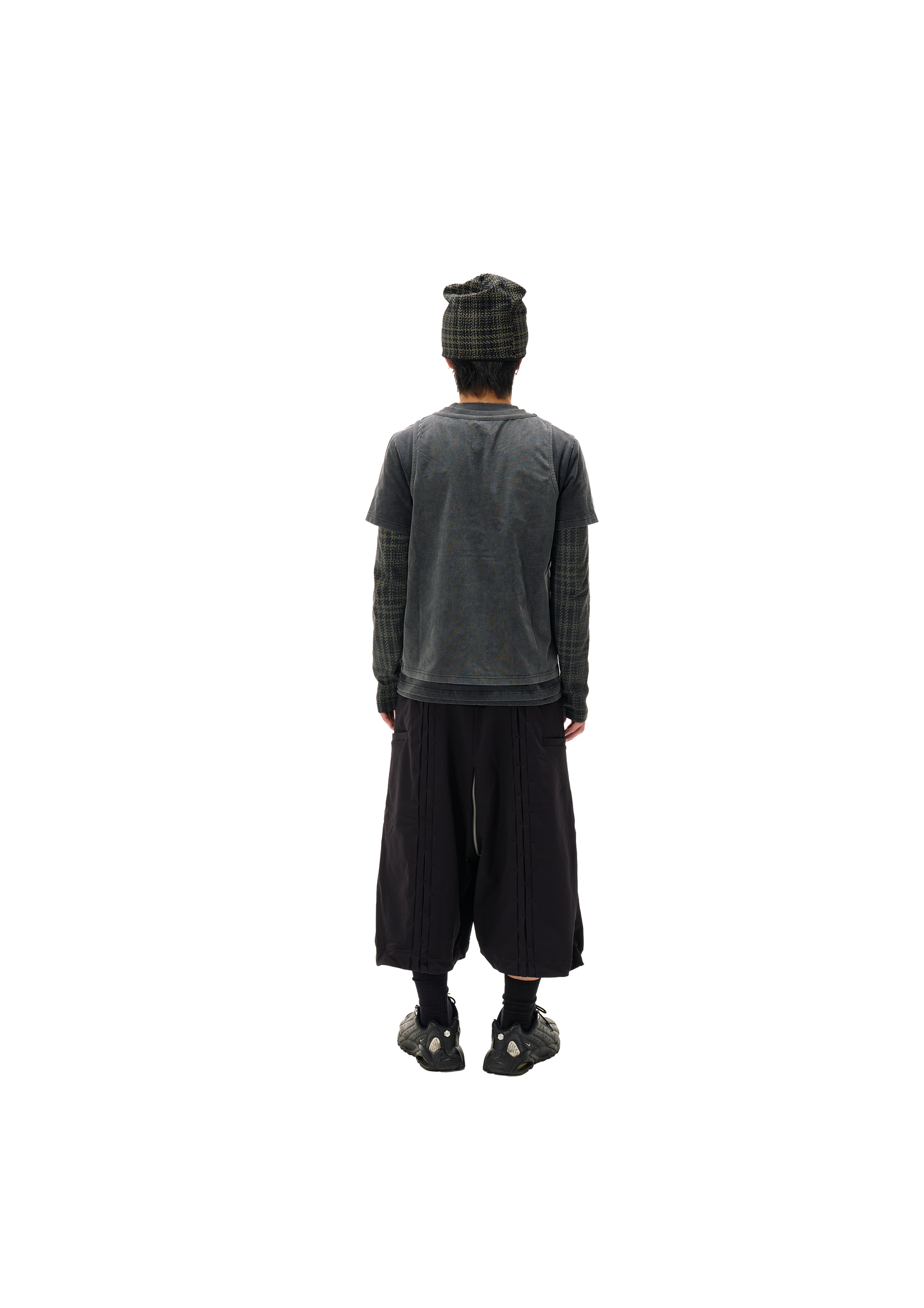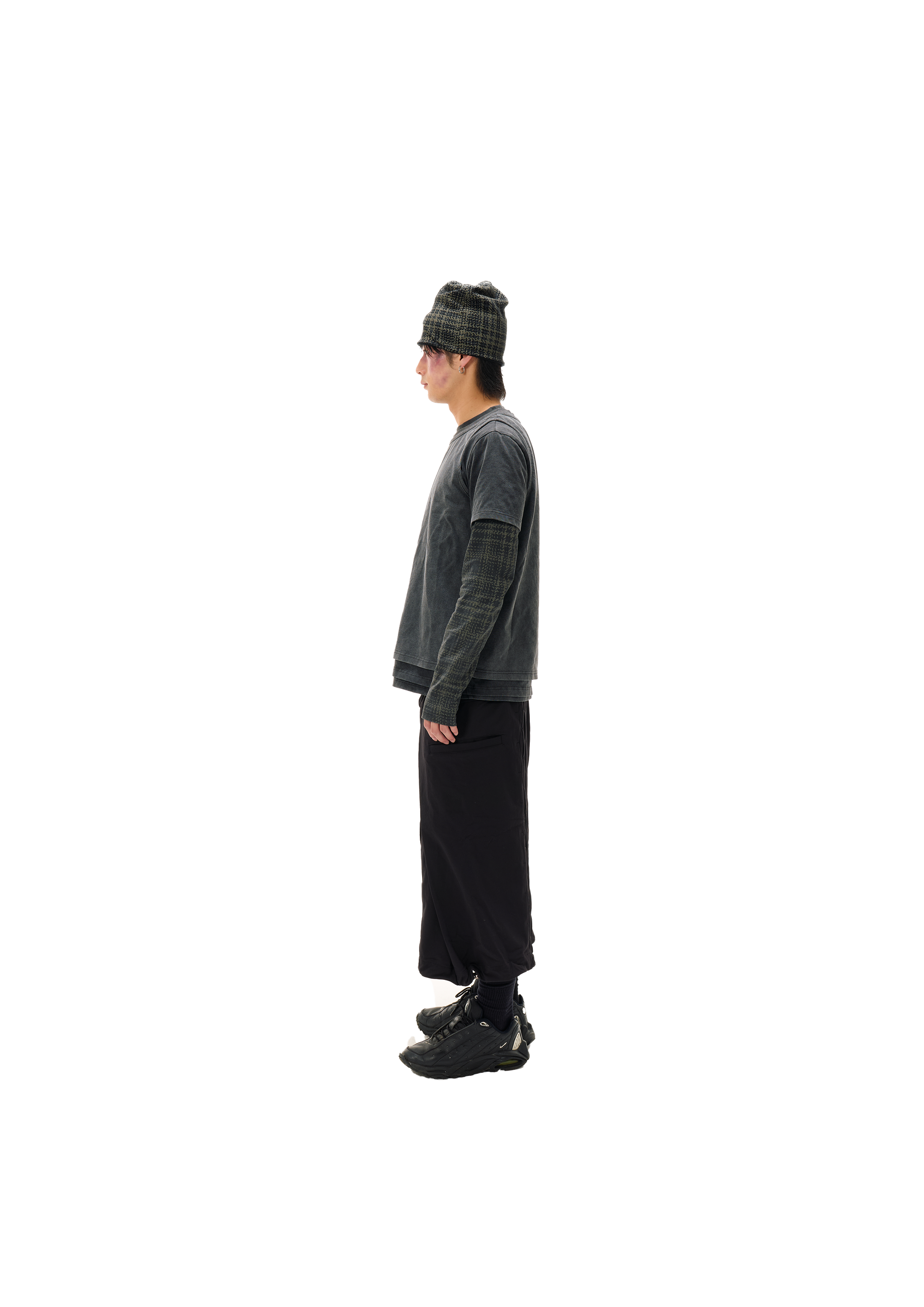 A custom plaid print and a full acid-washed finish give the piece a worn-in, textured character, enhancing its depth and visual identity. The silhouette is relaxed and layered, creating a distinct look that stands out while remaining easy to wear.